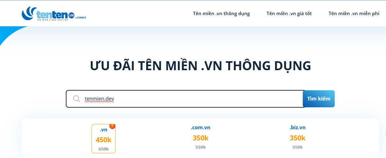 Tại Tenten.vn, bạn có thể lựa chọn từ hàng trăm loại tên miền khác nhau như .com, .vn, .net, .org, .shop, .info và các tên miền đặc biệt như .tech, .online, .pro, .ai. Với sự đa dạng này, Tenten.vn đáp ứng mọi mục tiêu sử dụng từ xây dựng thương hiệu, bán hàng, blog cá nhân đến những dự án công nghệ hoặc cộng đồng.